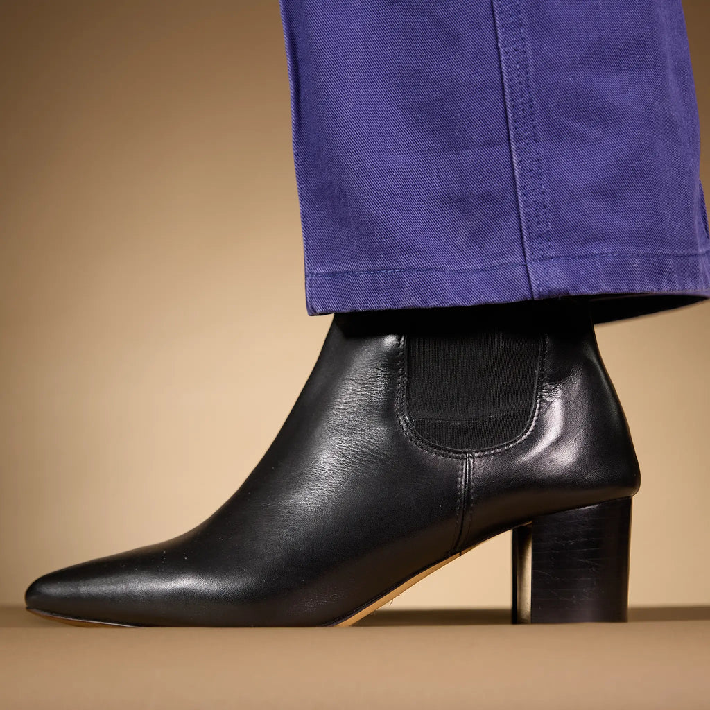Bottines à bout pointu, Chelsea boots ou boots classiques à brides : la bottine se décline en une multitude de possibilités pour affirmer votre style. Talon aiguille ou talon droit, plate ou à talon, la bonne paire de bottines finit un look avec caractère. La Chelsea boots, petit talon, est notre alliée incontournable des looks d’hiver, alliant confort et style.