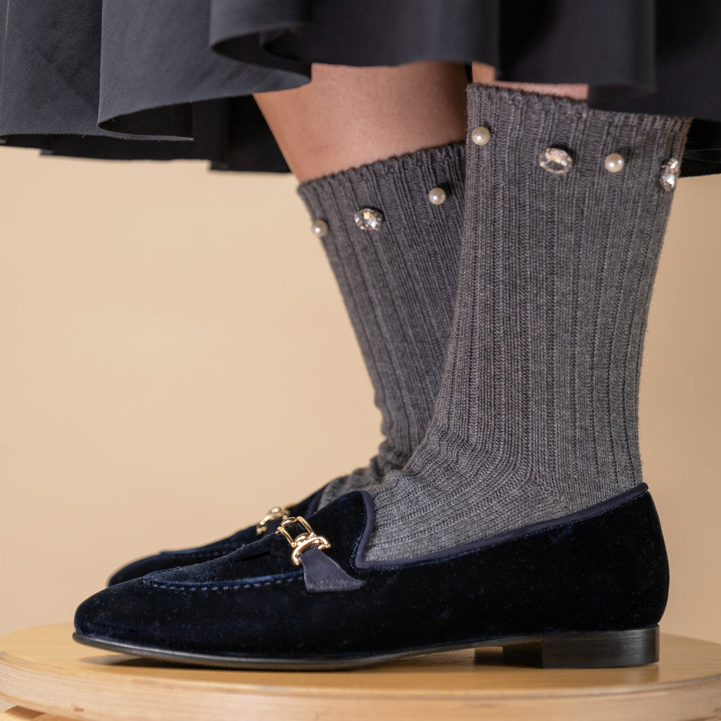Slippers velours bleu marine LOUISA