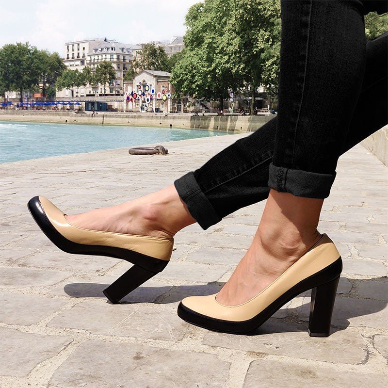 Escarpin biolore cuir kaki et beige JADI 36,5